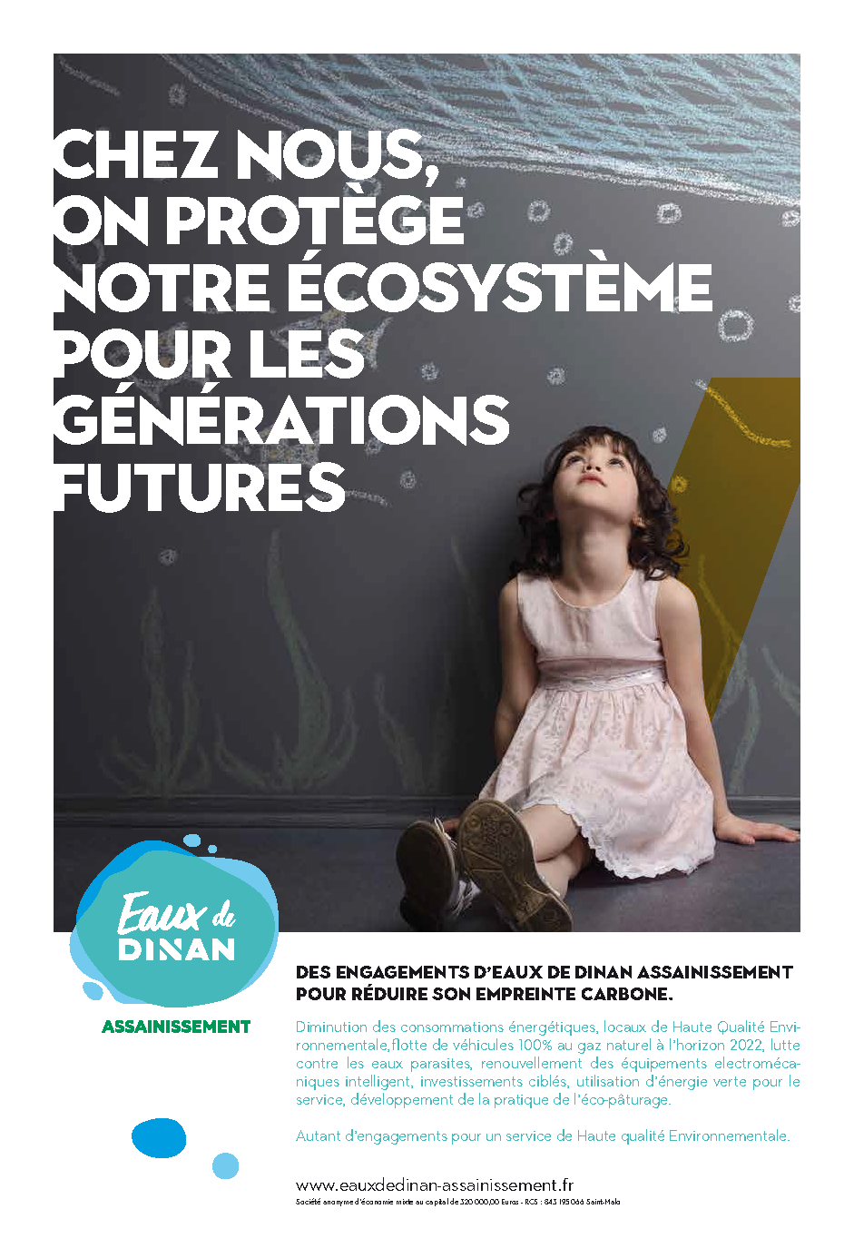 Parce que pour le développement durable est une nécessité pour la planète et pour l'humanité, le personnel d'Eaux de Dinan Assainissement s'engage au quotidien pour vous garantir une eau de qualité en quantité suffisante dans le strict respect de l'environnement et des écosystèmes. C'est aussi cela être défenseur de l'eau.